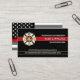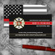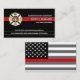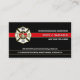 Tarjetas de contacto/de negocios de personalizado de bomberos de diseño profesional, elegante y personalizado con la bandera del bombero blanco y negro al revés, un fondo negro y un distintivo maltés de la casa cruzada y una delgada línea roja al frente. Personalizar cada campo de texto para su casa de bomberos y toda su información de contacto.