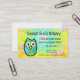 Esta divertida y genial tarjeta de visita de kitschy es un personalizable para satisfacer sus necesidades de negocios. Cambie el texto, el diseño, cada elemento para satisfacer sus necesidades. En este diseño es un diseño divertido y funk de búho que representa una panadería pero se puede cambiar eso a cualquier cosa. El cielo es el límite. Mi búho personalizado es fabuloso como diseño de tarjetas de visita que creo se inclina más hacia la población femenina pero apoyo los derechos de los gays así que no lo estoy enumerando como para una mujer porque me gusta pensar que cualquier persona que se asocie con cualquier género puede encontrar algo que amar sobre mi tarjeta de visita de búho.