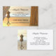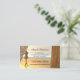 Una versátil tarjeta de visita para cualquier persona de la industria de la moda y para los profesores que imparten clases de costura. Esta elegante y moderna tarjeta de visita tiene un modelo sobre un fondo amplio con cortinas y colgaduras en tonos dorados.