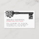 Tarjetas de visita clásicas y elegantes para agentes inmobiliarios, administración de propiedades, anticuarios. El diseño minimalista es sencillo y cuenta con un ilustracion de clave de esqueleto vintage, un bonito emparejamiento de fuentes y acento rojo. Los campos de texto de la plantilla están prediseñados para permitirle personalizar fácilmente. El tipo de letra y los colores se pueden personalizar fácilmente mediante la herramienta de diseño.