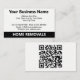 Tarjeta de presentación de Office, House y Home Removals que incluye un código QR en la parte posterior.