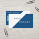 Las modernas tarjetas de visita geométricas en blanco y azul muestran tu nombre en la parte delantera con texto en azul sobre texto en blanco y blanco sobre azul. La parte posterior incluye un código QR de personalizable, el nombre de su trabajo, especialidad o empresa, y la información de contacto sobre un patrón de bloque de color azul y blanco invertido al frente. Personalice el código QR con el enlace de su portafolio o sitio web y agregue su texto en la barra lateral. Vea más tarjetas de visita personalizado en la colección de Artes Rocklawn. Copyright ©Claire E. Skinner. Todos Los Derechos Reservados.