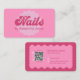 Presentamos nuestra atractiva tarjeta de presentación de la tipografía de uñas rosas, diseñada para hacer una declaración audaz y elegante para su salón de uñas o negocio de belleza. Esta tarjeta de visita única y vibrante presenta una combinación dinámica de elementos que captan la atención y transmiten profesionalismo.