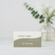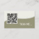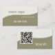 Tarjeta de visita con un diseño sencillo en color verde oliva y blanco suave. En la parte posterior está tu código QR personalizado.