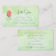 Esta tarjeta de visita - con un solo rosebud en la parte delantera - puede ser fácilmente personalizada con su propia información. La parte posterior tiene plantillas adicionales para obtener más información sobre el negocio. Tanto la parte delantera como la trasera se encuentran sobre un fondo verde pastel de color verde pastel, con baldosas y acuarelas. Todos los artículos son rellenados por Zazzle y están garantizados un 100% de satisfacción. Para sus pedidos y problemas de envío, póngase en contacto con el Servicio de Atención al Cliente de Zazzle a través de https://goo.gl/nCgptf