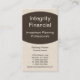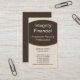 Diseño de tarjetas de negocios para curvas ejecutivas profesionales en espresso. Esta elegante y limpia tarjeta de perfil es una gran elección para alguien interesado en hacer una primera impresión. Una elección perfecta para los profesionales del sector financiero como los planificadores de inversiones, analistas, prestamistas o agentes de seguros. Para hacer de este diseño su propio, agregue su información personal/comercial a los campos proporcionados. Las fuentes y los colores del texto pueden cambiarse pulsando en el botón "Personalizar".