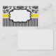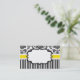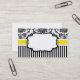 Tarjeta de presentación elegante con fondo de damasco blanco y negro y banda amarilla. Hay una etiqueta en el centro disponible para el texto.