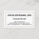 Este diseño sencillo, minimalista y de personalizable de tarjetas de visita incluye un borde de tres líneas. Podría ser utilizado por un profesional como un dentista estético, un cirujano dental, un dentista familiar o un endodoncista. El nombre, la profesión y la información de contacto se pueden personalizar.
