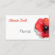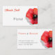 Tarjeta de visita de color agua rojo con adormidera. La plantilla está lista para que usted la pueda personalizar con su nombre y sus datos personales.