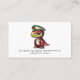 Un bonito diseño de tarjetas de visita con un ilustracion de dinosaurio rojo que tiene al gorra del capitán en la cabeza. Es una gran opción para los niños profesionales del entretenimiento como payasos, magos, niñeras profesionales, animadores de cumpleaños infantiles, etc.