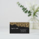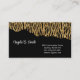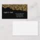 Esta tarjeta de presentación se muestra en un diseño de arte rasgado de estampado animal con brillo falso en color negro y dorado.