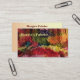 Esta tarjeta de visita anuncia una tienda de tela especializada en telas para la moda y la decoración doméstica, máquinas de coser, nociones y accesorios. Este colorido diseño artístico y elegante presenta una imagen de tela abstracta contemporánea con colores de arcoiris psicodélico ondulado de rosa, rojo, amarillo, naranja, verde, azul, marrón, malva, violeta y turquesa que se asemeja a la paleta de un pintor. el reverso tiene todo el texto pertinente que puede ser personalizado según sus necesidades.