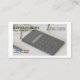 Una tarjeta de visita que muestra un par de gafas, chequera, papeleta de depósito, calculadora y dos billetes de cien dólares. Esto se puede usar para un planificador financiero o alguien que haga consolidación de la deuda.