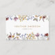 Tarjeta de presentación de Flores Silvestres. El tema de moda de este año es esta hermosa paleta de colores de bronceado, marrón, óxido, terracota y naranja quemado. El pasto seco rústico, las hojas y las flores silvestres vintage son detalles impresionantes para su tarjeta de negocios moderna de moda boho.
