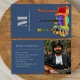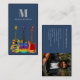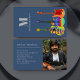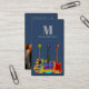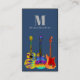 Tarjeta de negocios para profesores de guitarra con plantilla de fotos y tipografía moderna. Coloridos ilustraciones psicodélicos de guitarra en un fondo azul, con monograma personalizado, nombre, detalles y plantilla de foto. El perfecto diseño de tarjetas de visita para guitarristas, músicos profesionales, artistas, compositores y profesores de música. Pintura original de la artista Catherine Sweetman