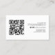 Tarjeta profesional de fotografía de estilo minimalista y moderno con fondo blanco en la parte posterior de la tarjeta. Personalizar con su propia foto, agregue o quite el código QR, cambie el color de fondo si lo desea y agregue sus detalles de contacto. Consulte otras opciones de tarjeta de visita en la colección Minimal Photo Business Card.