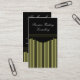 Elegante diseño de la tarjeta de visita Stripes de Moda en color negro y verde oliva con fondo rayado y borde de vieiras. Esta elegante y profesional tarjeta de visita doble haría una gran primera impresión a los clientes potenciales. Personalizar con los detalles de su negocio rellenando los campos de texto en la página del producto o haga clic en el botón "Personalizar" para encontrar opciones de personalización adicionales.