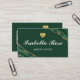 Diseño de tarjetas de visita de mármol verde y dorado. Esta tarjeta profesional y elegante está diseñada con un elegante fondo verde esmeralda, complementada con lujosos acentos de mármol dorado, lo que la convierte en una elección perfecta para cualquier tipo de negocio. El impresionante y cautivador diseño garantiza una impresión duradera en los clientes potenciales. Personalice el texto para incluir su nombre, título y detalles de contacto, y cree una tarjeta única que represente con precisión su marca. Con un papel de alta calidad y duradero, esta tarjeta de visita dura. Actualice su imagen profesional hoy mismo con este sofisticado diseño de tarjetas de visita Green and Gold Marble.