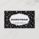 Tarjeta de presentación Handyman con placa retro y un patrón de fondo de herramienta manual. La tarjeta tiene un esquema de color blanco y negro. Perfecto para un hombre, mecánico de automóviles, carpintero, pintor, electricista o reparador de electrodomésticos.