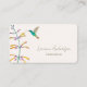 Elegantes tarjetas de visita con tu nombre y profesión/título/nombre de negocio en la parte delantera con un colibrí pintado a mano y una rama botánica. Información de contacto del personalizable en la parte posterior. Se pueden cambiar el estilo y el tamaño del tipo de letra.