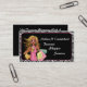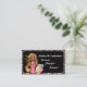 Savvy tarjeta de visita personal de compras con fondo negro, impresión de cebra y una chica de compras experta.
