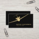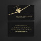 Tarjeta de visita con una imagen de avión de chorro de color dorado elegante.