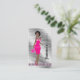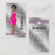 Tarjeta de presentación para artistas de joyas con mujer afroamericana que viste joyas y ropa de bonito.