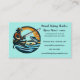 Esta tarjeta de visita contiene un ilustracion de un hombre en un bote que se engancha en un pez a la izquierda y a la derecha están los detalles del negocio. En la parte posterior hay un campo para obtener información adicional. El texto de ambos lados es editable, por lo que se cambian los detalles, así como el estilo de fuente, el tamaño y el color. También se puede cambiar el color de fondo de ambos lados. Disfruta de tu nueva tarjeta de presentación editable.