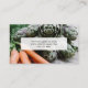 Diseñadas para puestos de verduras, mercados de agricultores, granjas familiares, etc., estas tarjetas de visita tienen una foto de zanahorias naranjas y alcachofas verdes y el nombre de su pequeño negocio. ¡Ideal para vender productos frescos cuidadosamente cultivados! Alentar la repetición de visitas de los clientes con estas simples tarjetas.