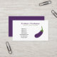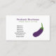 Una simple tarjeta de visita con un ilustracion de berenjena. La parte de atrás viene con un texto de personalizable sobre un fondo morado. Podría ser perfecto para negocios como nutricionista, dietista, catering, chef vegano, granja orgánica, mercado agrícola o como marca.