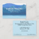 Una pintura acuarela de montañas y un lago en azul y verde hace una hermosa tarjeta de visita que funcionaría bien para una empresa de ecoturismo, un guía de la naturaleza o incluso un resort. La parte delantera tiene su nombre comercial, y su nombre y título en blanco. El fondo es azul claro, a la sombra del lago, con información adicional de la empresa.