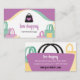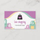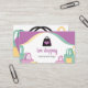 Una fantástica y divertida tarjeta de visita para los amantes de las compras. Ya sea que venda bolsas de compras, tenga un negocio relacionado con compras o moda, esta es una excelente tarjeta de visita para promocionar una marca divertida en su negocio.