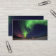 Un diseño sencillo en una tarjeta de visita ya hecha. Puede cambiar fácilmente los colores del tipo de letra o agregar información al dorso de la tarjeta. Esta imagen fue creada a partir de una foto de dominio público de la Fuerza Aérea de las Luces del Norte en el lago Bear, Alaska.