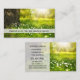 Tarjeta de visita con flores primaverales al sol con un árbol. Hermoso para un negocio que ofrece jardinería, paisajes, servicios de césped, mantenimiento de terrenos o servicios de arquitectura paisajística.
