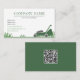 Una simple tarjeta de visita para Lawn Care & Profesional Gardener o para personas que trabajan en el campo paisajístico: paisajista, siembra y mantenimiento del césped, mantenimiento de espacios verdes, etc. Incluye césped, cortadora de césped y un código QR personalizable en la parte trasera.