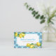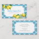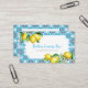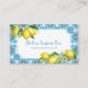 Las baldosas azules mediterráneas constituyen un entorno único y te transportan a Positano, Italia, con esta brillante tarjeta de visita. Las ramas llenas de limones maduros y hojas de limón se extienden sobre el panel que contiene información de negocios Excelente para negocios con temas de limón, cítricos o jardín. Disponible con productos a juego.