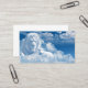 León y cordero en el cielo con tarjeta de visita de nubes.