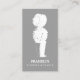 Un logotipo topiario blanco aparece proyectando una sombra sobre este diseño clásico de tarjetas de visita gris. El logotipo de actualidad representa la elegancia y la artesanía. © 1201AM DESIGNS