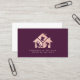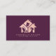 Servicios modernos de limpieza tarjeta de visita para empresas que incluye equipo de limpieza dentro del icono, nombre y título de la casa de oro rosa en el frente sobre un fondo oscuro de color burdeos. Perfecto para servicios de limpieza domésticos e industriales.