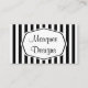 Elegante tarjeta de visita con marquesina blanca y negra sobre fondo rayado. Cambiar el texto de ejemplo a su propio