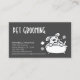 Moderna y moderna mascota de moda ofrece tarjetas de visita con dibujos animados en el icono de la bañera de fondo gris. Personalice con sus datos de contacto en la parte delantera e información adicional en la parte posterior de la tarjeta.