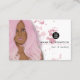 Glamorosas tarjetas biz en el salón de belleza con un chica de moda rosada.
