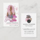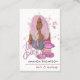 Glamorosas tarjetas biz en el salón de belleza con un chica de moda rosada.