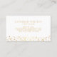 Una tarjeta de visita moderna y de moda con estrellas y puntos falsos de Relieve metalizado dorado. Esta elegante tarjeta de visita es perfecta para planificadores de eventos, planificadores de bodas, fotógrafos, maquilladores, diseñadores, agentes inmobiliarios, blogueros y otros negocios. Personalizable completo para satisfacer sus necesidades. Hay otros colores de fondo disponibles.