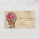 Glamorosas tarjetas de visita en el salón de belleza con una influencia afroamericana con una vibrante imagen rosa y dorada y un reverso de mármol.