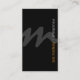 Esta elegante tarjeta de presentación para emprendedores de guiones audaces presenta un gran guión en negrita, un monograma gris oscuro en medio de la tarjeta sobre un fondo negro. Su nombre y título aparecen verticalmente en el borde derecho de la tarjeta en blanco y naranja. Los demás datos de contacto, incluido el logotipo de su empresa, aparecen en la parte posterior de la tarjeta. La parte posterior de la tarjeta también incluye una letra monograma más pequeña en el mismo tipo de letra del guión. Perfecto para administración, gestión, profesionales, contabilidad, finanzas, temas de negocios.