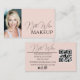 Tarjeta de presentación de negocios de maquillaje moderno de rosa sonrojo y negro.
