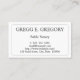 Este sencillo, mínimo y elegante diseño de tarjetas de visita incluye un fondo blanco y un borde de una línea con esquinas redondeadas. Podría ser utilizado por un profesional como un notario público, un abogado, un abogado o un asesor jurídico. El nombre, la profesión y los datos de contacto pueden ser personalizados.