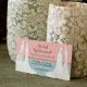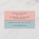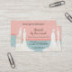 Si eres un diseñador de traje de novia o propietario de una tienda de novias, es importante transmitir tu enfoque de negocios inmediatamente. Esta tarjeta de visita incluye cuatro distintivos de novia que enmarcan la información comercial. El fondo es de color rosa chispeante, con un diseño de hierro forjado, mientras que el fondo es un rosetón con un azul pálido. El resto de la información comercial, incluyendo un sitio web, se imprime en la parte posterior con el mismo fondo de patrones. Disponible con productos coincidentes. com