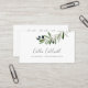 Esta moderna tarjeta de visita es perfecta para un pequeño empresario, un consultor, un estilista y mucho más. El diseño rústico y elegante presenta una sencilla acuarela de hojas botánicas verdes y aceitunas negras en una pequeña rama de ambiente mediterráneo clásico.